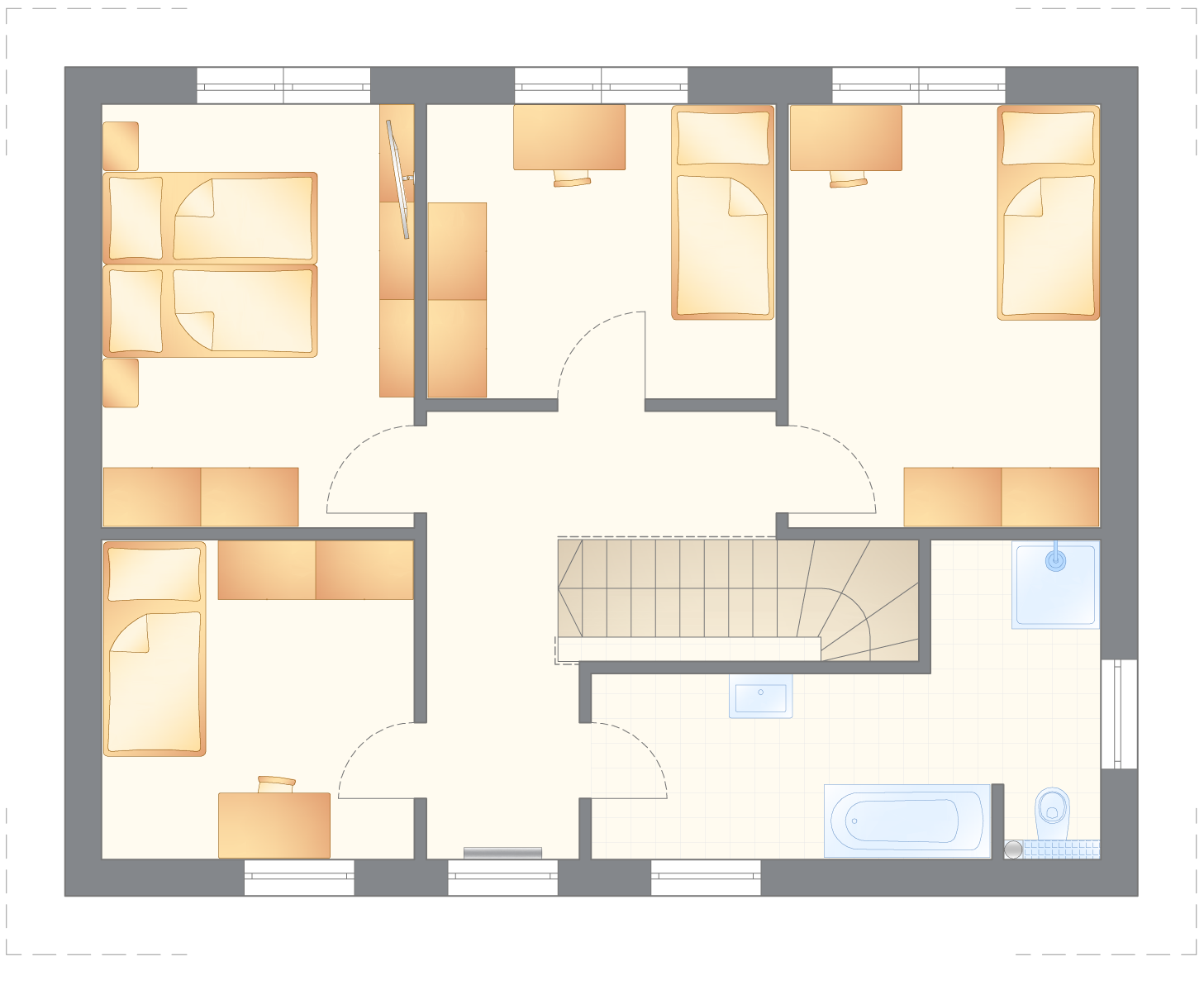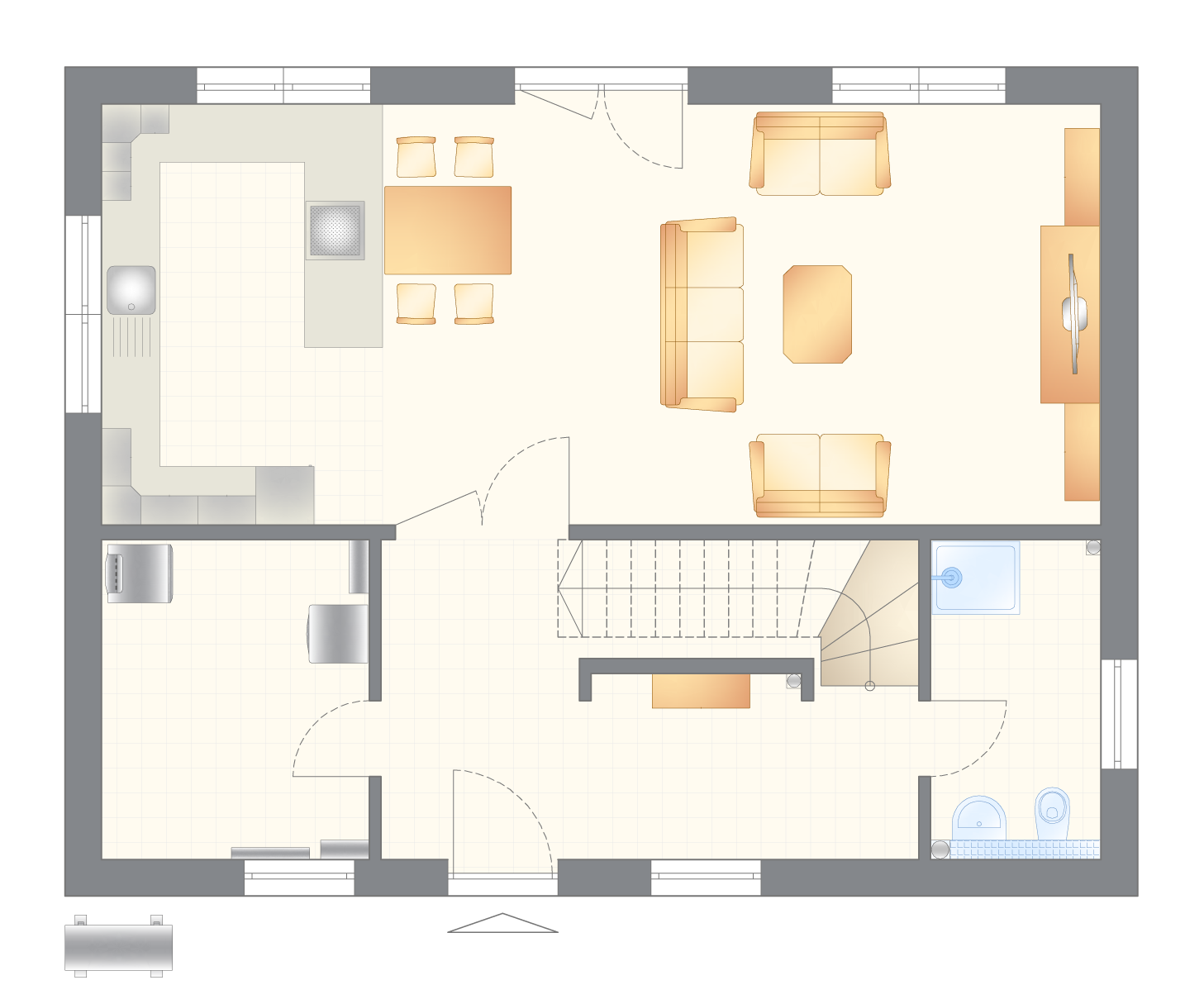 elektrische Aluminium-Rollläden an allen Fenstern und Terrassentür in EG und OG